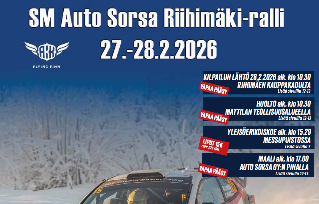 SM Auto Sorsa Riihimäki-ralli ajetaan lauantaina 28.2. 🔥🔥🔥